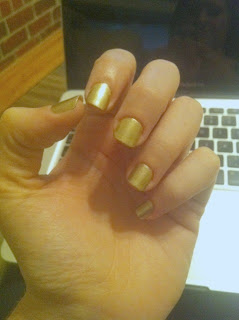I took it with me for a much needed manicure, and requested three coats since it went on so sheer. I think next time I may just stick to one or two, or I may layer it over a taupe color since it's so blinging.